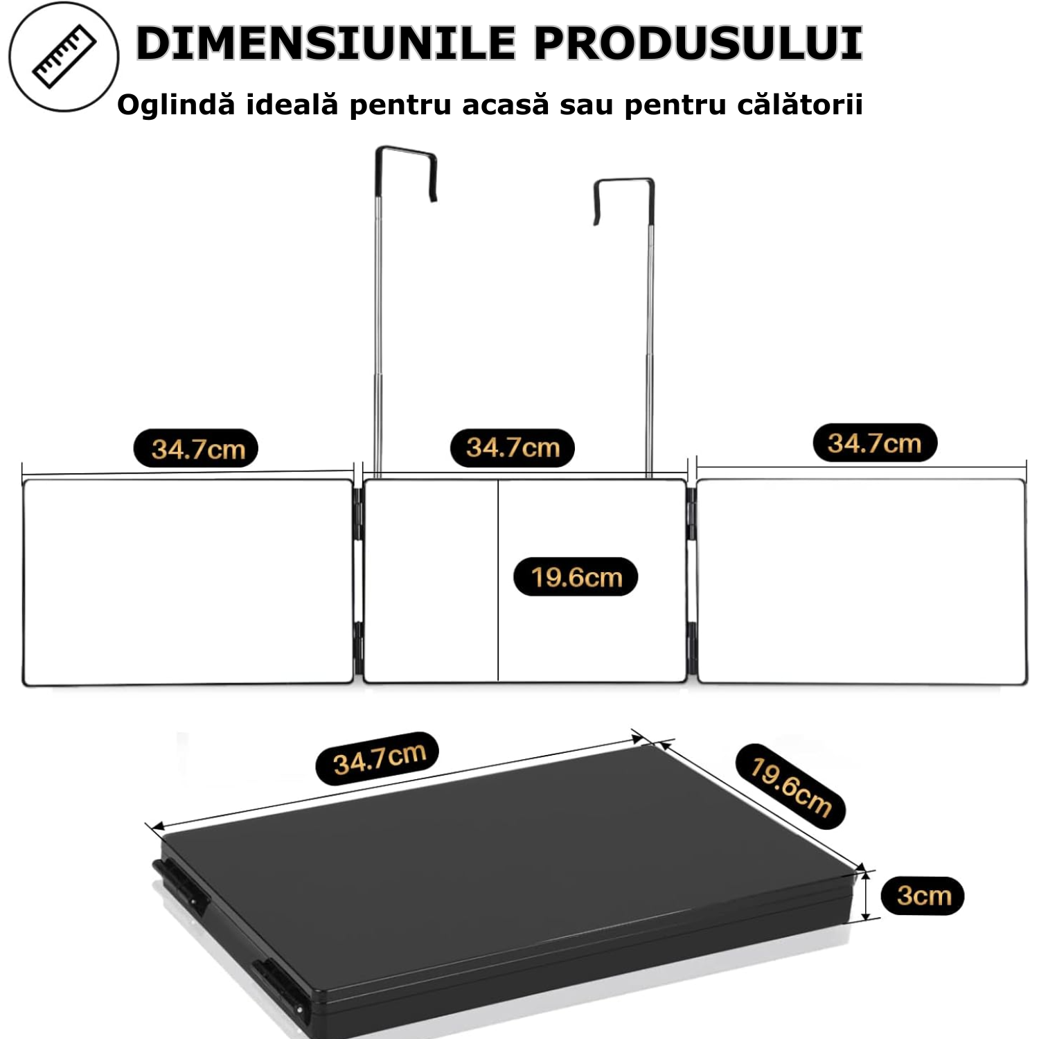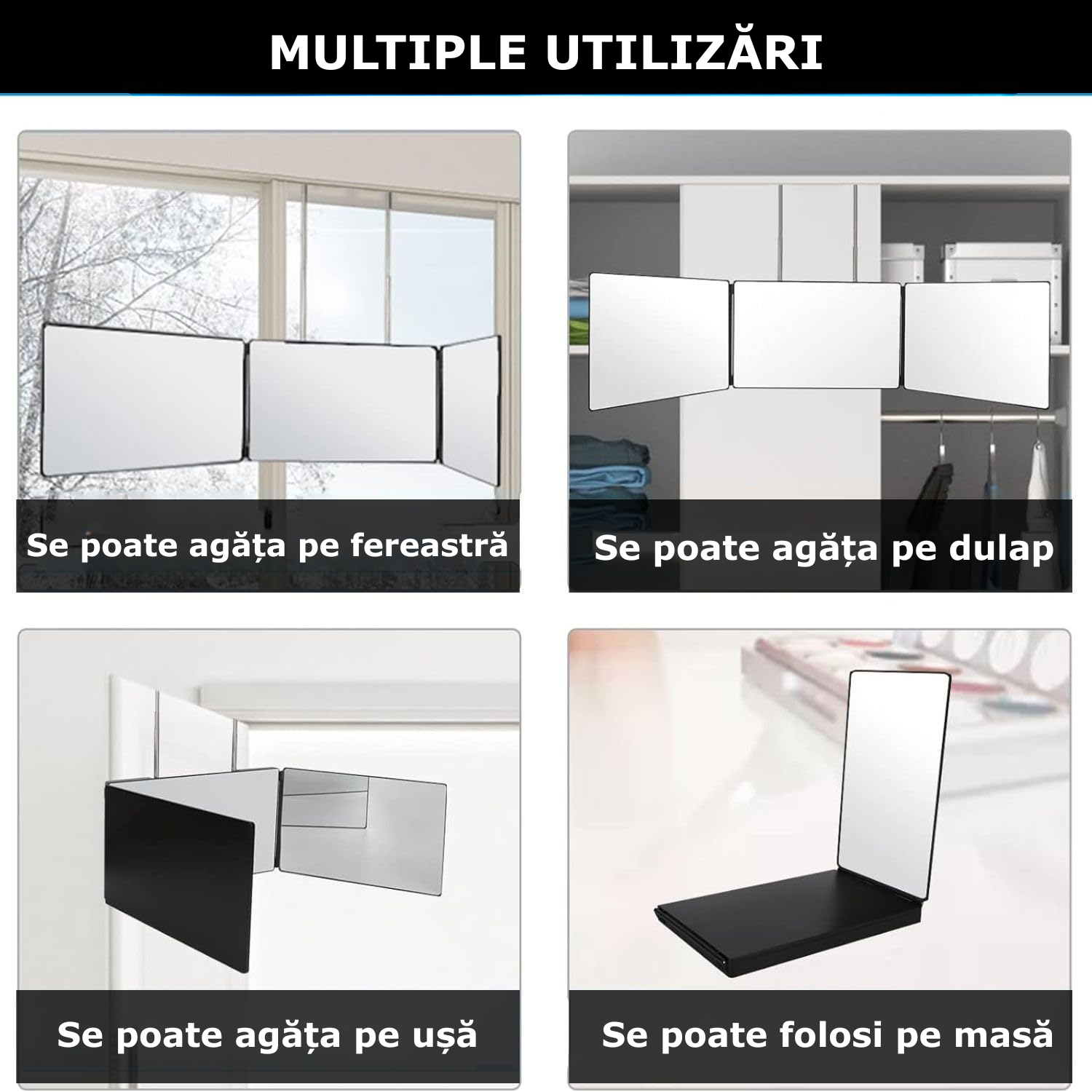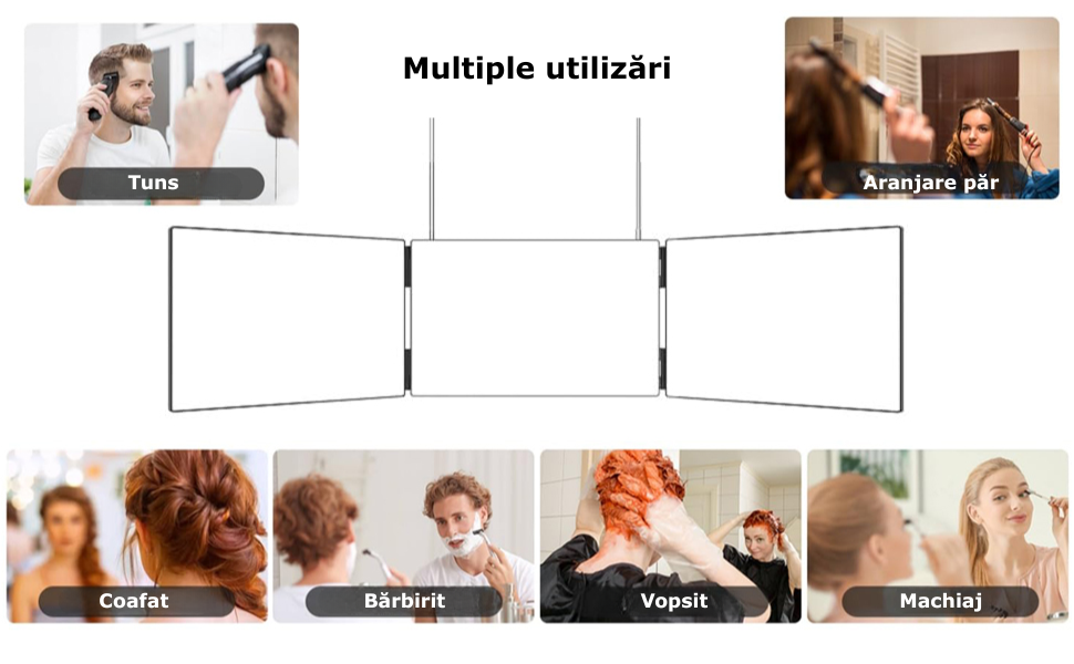Design cu oglinda in 3 directii Simply Joy: Cu ajutorul oglinzii noastre in trei directii, veti putea vedea usor in spatele capului si obtineti de fiecare data tunsoarea perfecta DIY, mai perfecta decat o oglinda cu doua directii.