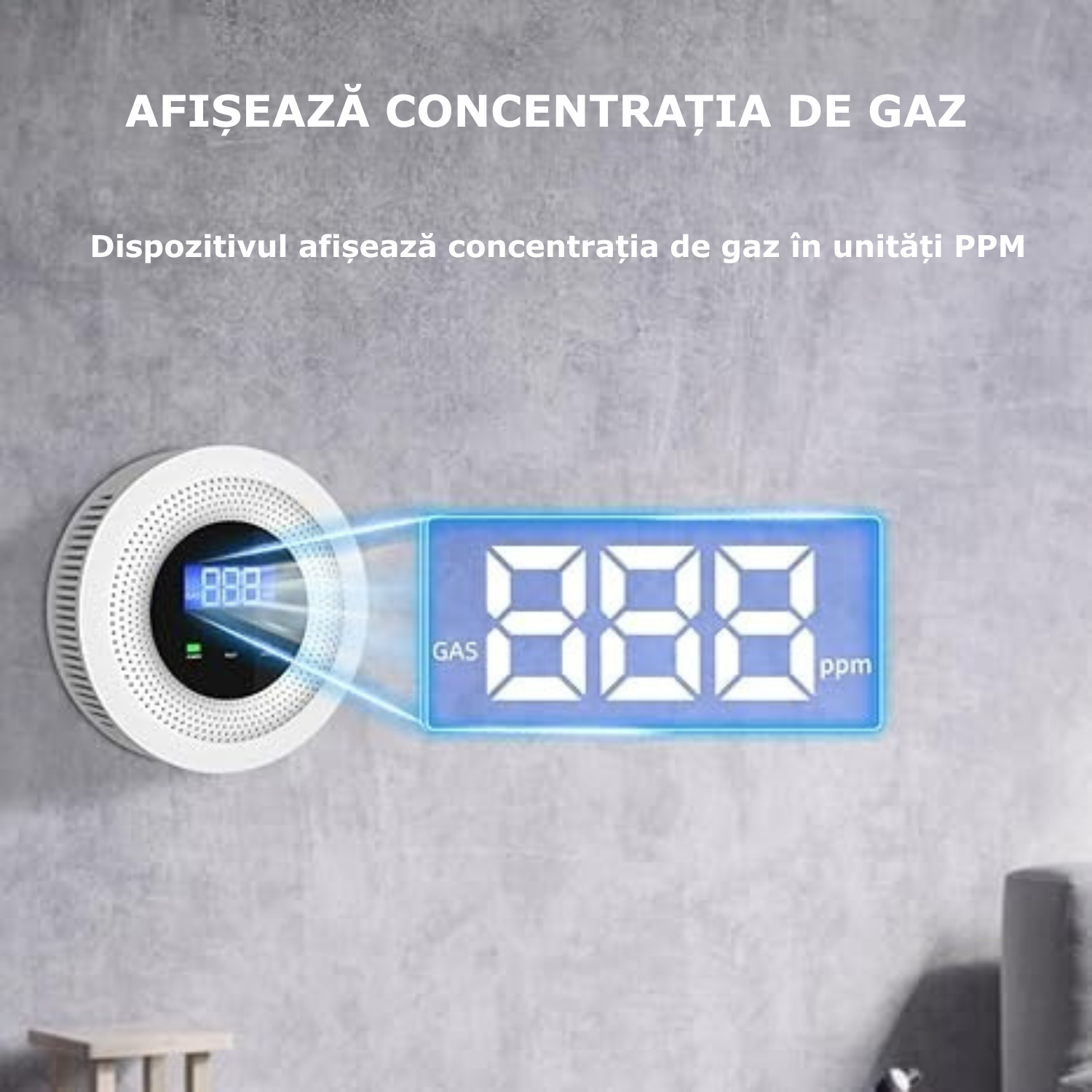 Detectarea Concentratiei de Gaz: Afisaj clar al nivelului de gaze din incapere pentru o protectie suplimentara.