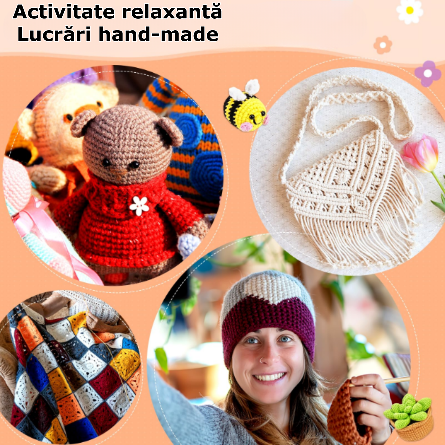 Setul nostru de crosetat are accesorii multiple si o calitate excelenta. Accesoriile sunt realizate din metal de inalta calitate si plastic de inalta calitate, care sunt rezistente si durabile. Produsul este usor de folosit chiar si pentru incepatori, permitandu-va sa realizati bricolaje distractive fara efort si in propriul ritm.