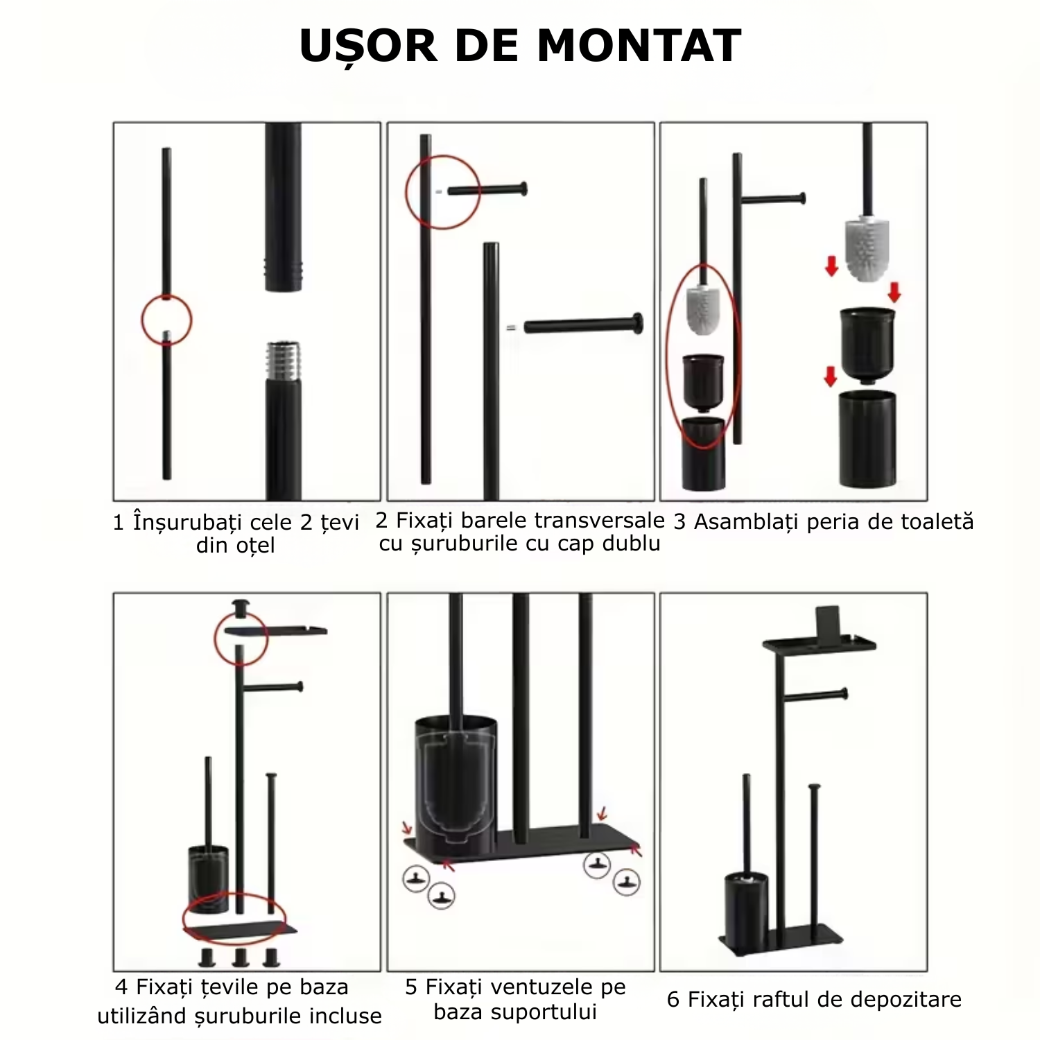 Suportul va ajuta sa depozitati produsele de toaleta intr-un singur loc, economisind spatiu si oferind baii dumneavoastra un aspect ingrijit.