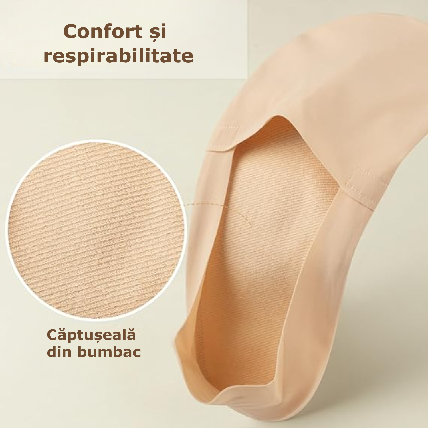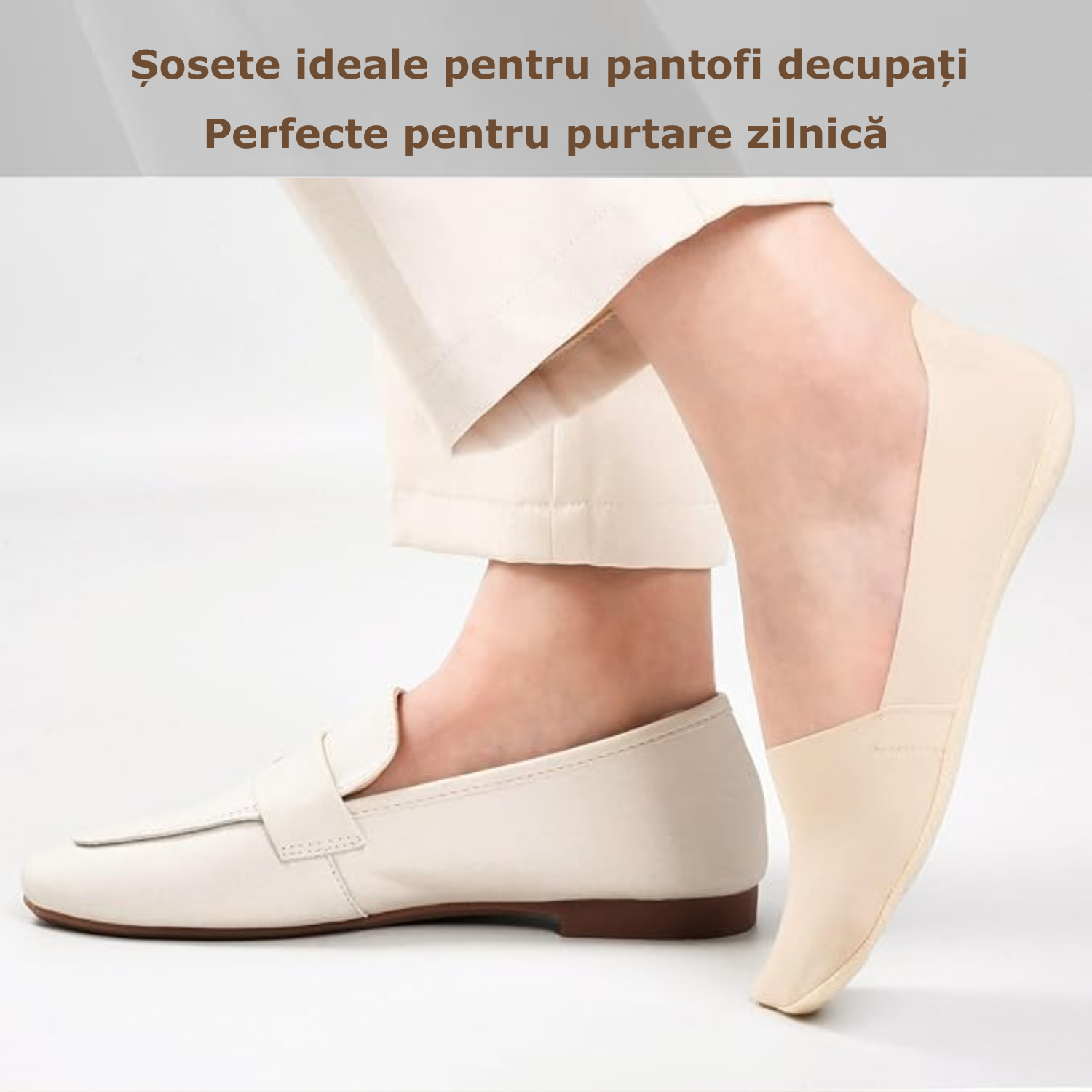 Designul lor invizibil se potriveste perfect cu toti pantofii tai, de la pantofi casual pana la mocasini, loafers, pantofi slip-on, pantofi eleganti cu toc, balerini, etc. Disponibile intr-o varietate de culori, aceste sosete sunt perfecte pentru a va imbunatati tinutele, ramanand in acelasi timp confortabile si versatile.