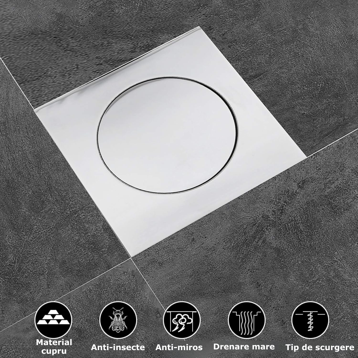 Design elegant: Sifonul de scrugere are un aspect simplu si elegant, se imbina perfect cu podeaua cabinei de dus si formeaza un tot armonios. Este, de asemenea, potrivit pentru bucatarie, baie, garaj, subsol, balcon, toaleta, piscina interioara, etc.