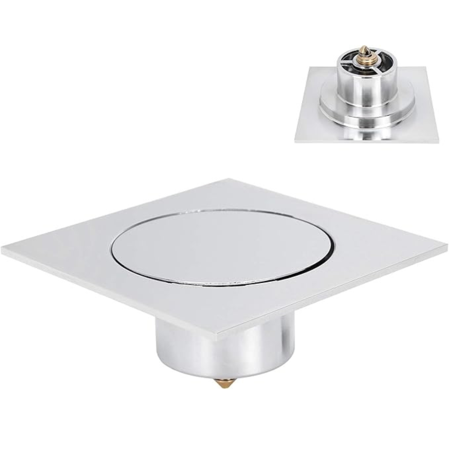 Sifon de scurgere pentru pardoseala cu supapa anti-miros, Simply Joy, sistem de scurgere cu capacitate mare de drenaj, deschidere cu click, rezistent la mirosuri, design patrat si rotund, potrivit pentru baie, bucatarie, balcon, terasa, 10 x 10 cm, Argintiu