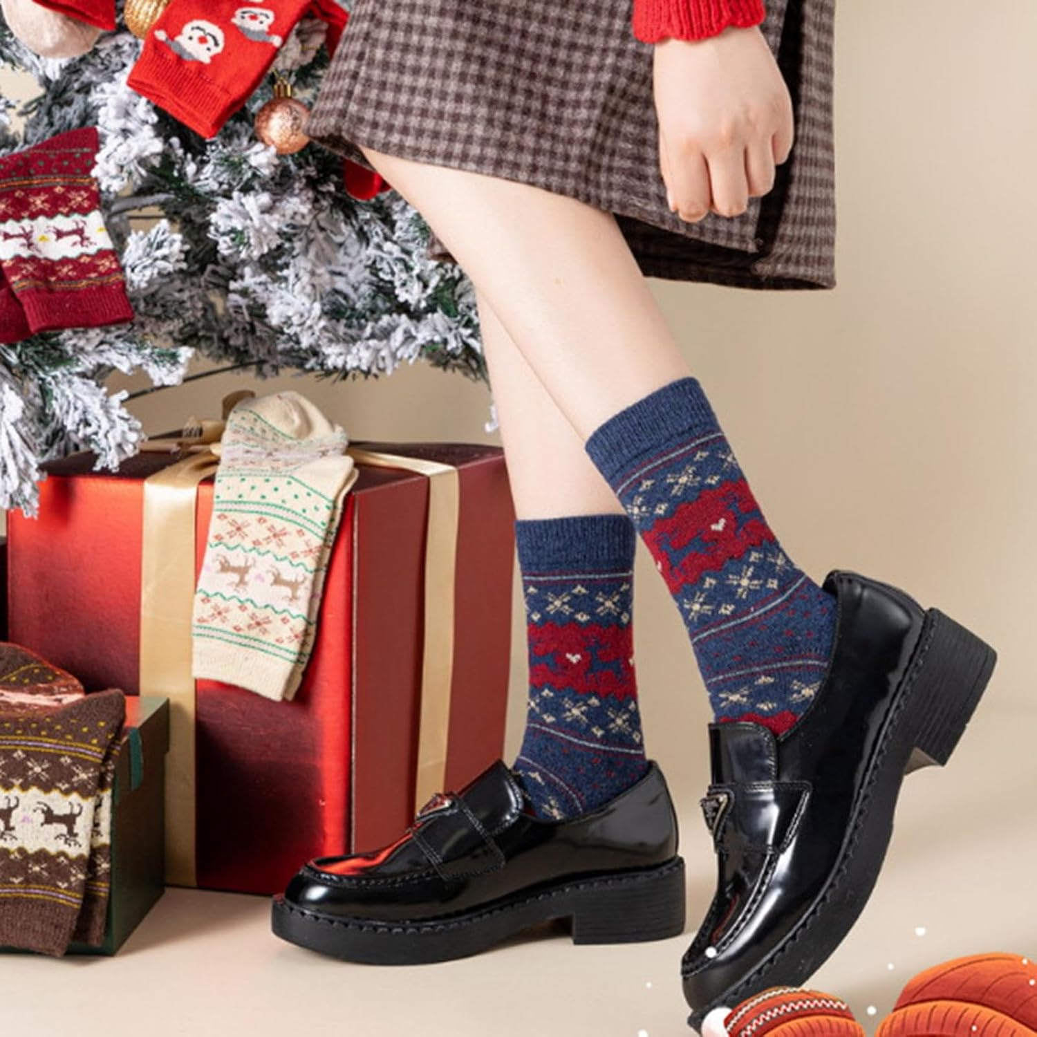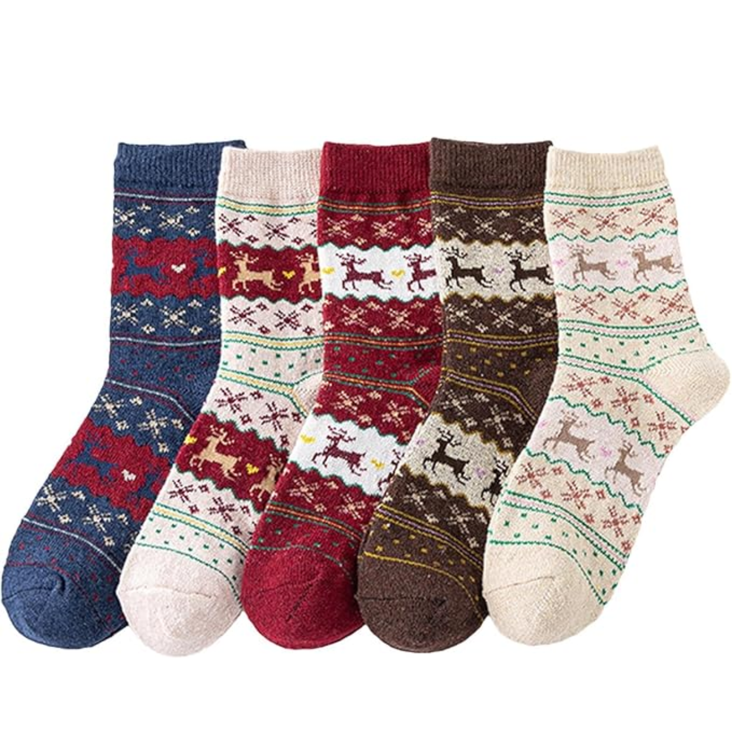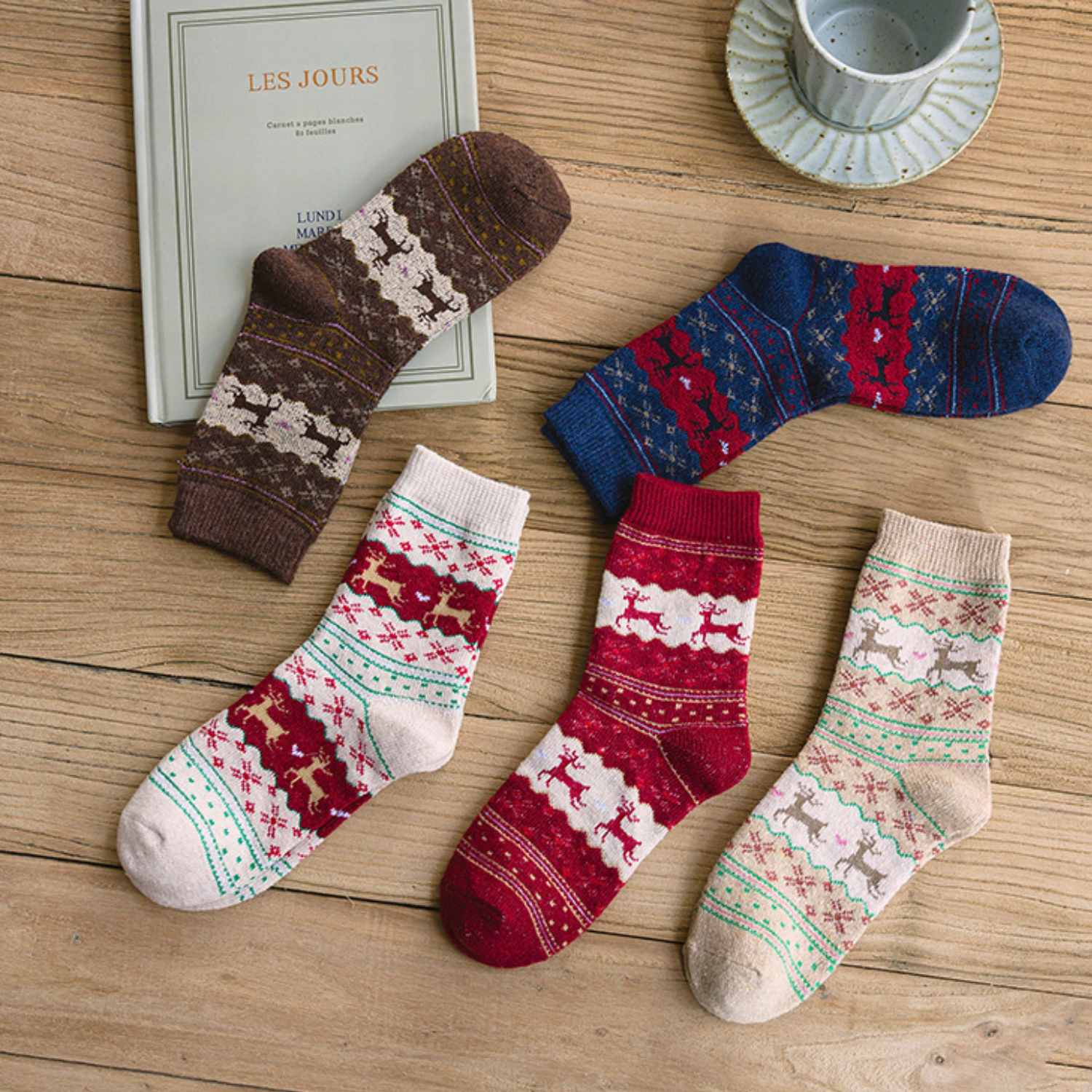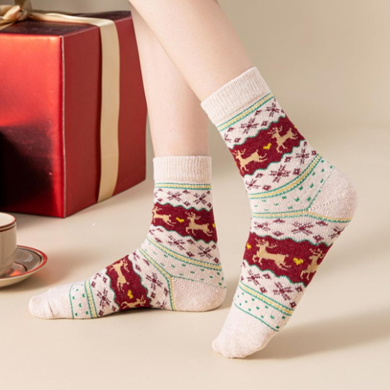 Sosete dama, set 5 perechi de sosete tricotate, model calduros cu imprimeu cu reni pentru femei, Marime 36 - 41, Sosete confortabile de iarna pentru femei, cutie cadou, ziua de nastere, Craciun, Anul Nou