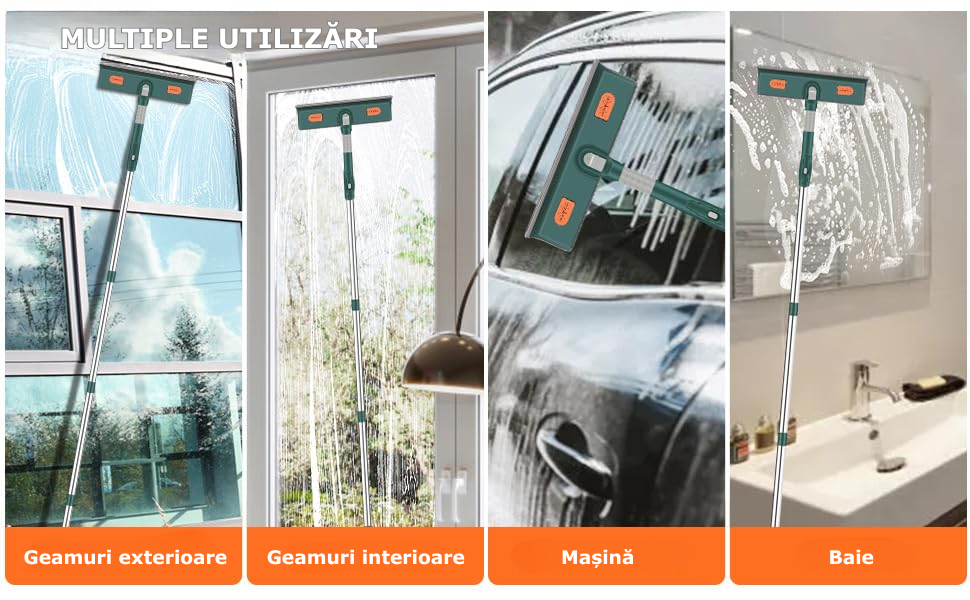 Utilizare multipla: Setul nostru de curatare a geamurilor este o solutie versatila pentru toate nevoile dumneavoastra de curatare si este proiectat pentru o gama larga de medii, inclusiv apartamente si case, centre comerciale, birouri si suprafete mari de sticla in interior si exterior.
